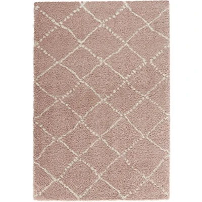 MINT RUGS Hash Rug High Pile Living Room Soft Fluffy Long Shaggy Flokati Diamond Pattern for Kitchen Hallway or Bedroom Pink Cream 120 x 170 cm