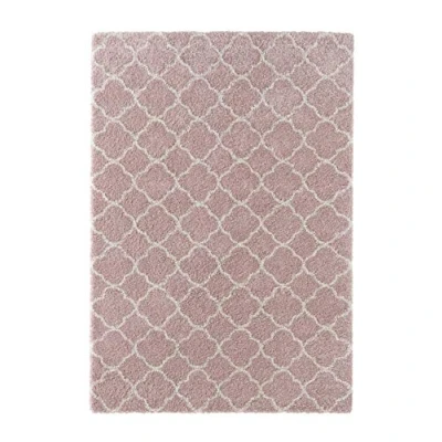 Mint Rugs Luna Deep Pile Rug, Soft Fluffy Long Pile, Shaggy Flokati Geometric Pattern for Living Room, Kitchen, Hallway or Bedroom, Pink Cream, 120 x 170 cm, Polypropylene