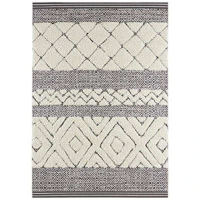 Mint Rugs Todra Rug Living Room Flat Woven with High Pile Details in Ethnic Design, Cuddly Vintage Runner for Room, Bedroom, Dining Hallway, Black Cream, 80 x 150 cm