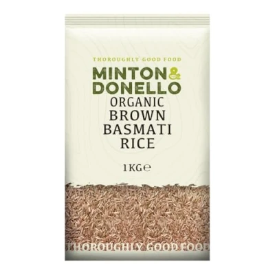 Minton & Donello 1Kg Organic Long Grain Brown Basmati Rice High Fibre, Low Glycaemic Index, Rich in Nutrients