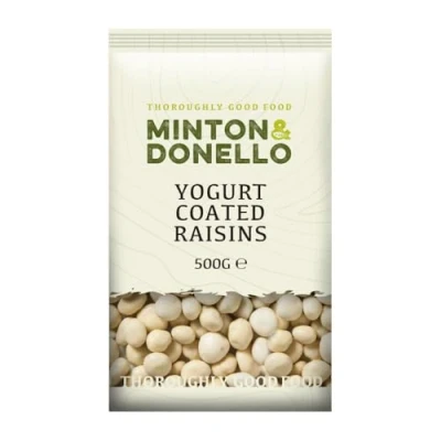 Minton & Donello 500g Yogurt Coated Raisins, Gluten Free, Suitable for Vegetarians