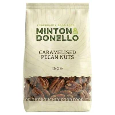 Minton & Donello Caramelised Pecan Nuts 1kg Roasted Pecans with Sweet Caramel Coating, Sugared Gourmet Sweets Snack, Great for Sharing, Baking Desserts Bulk Pack