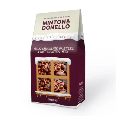 Minton & Donello Milk Chocolate Pretzel and Nut Cluster Box 180g Crunchy Pieces with Roasted Peanuts Coated in Smooth Chocolate, Sweet Salty Snack Mix