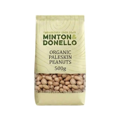 Minton & Donello Organic Paleskin Peanuts, Natural, Unsalted, High in Protein, 500g