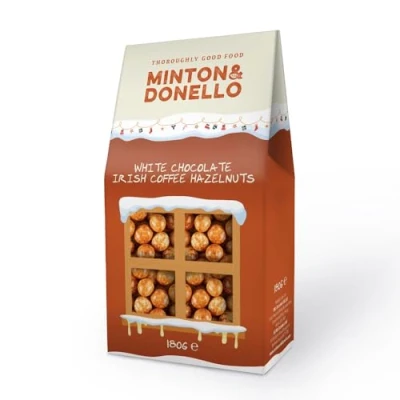Minton & Donello White Chocolate Irish Coffee Hazelnuts Box 180g Whole Roasted Coated in with Flavour, Covered Nuts Snack