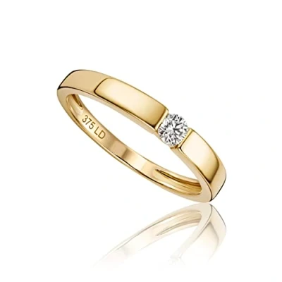 MIORE 0.10 carat diamond Engagement Rings for Women, Solitaire in 375 9ct Yellow Gold, Solid Gold with Jewellery Box Gifting