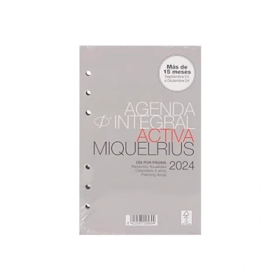 Miquelrius 2024 Comprehensive Annual Diary Refill, Day Page, Active Size 117 x 182 mm, Spanish, Portuguese and English