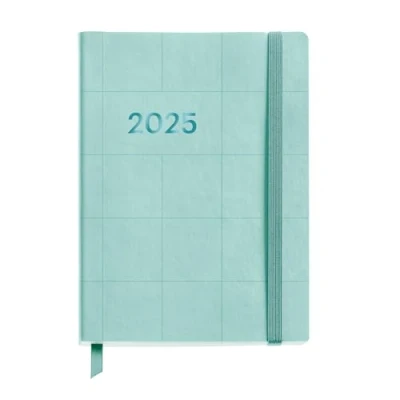 Miquelrius 2025 Diary, Yearly Diary 122 x 168 mm, Day Page Agenda, Flexible Cover with Stitched Leather, 80 g/m² Paper, Spanish, English and Portuguese, Aqua Colour