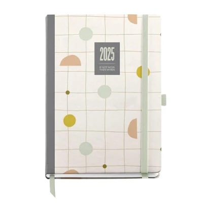 Miquelrius 2025 Diary, Yearly Diary 155 x 213 mm, Day Page Agenda, Laminated Cardboard Cover, Spiral, Elastic Closure, Paper 80 g/m², Spanish, English and Portuguese, Silvia, MR22274