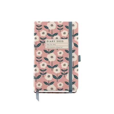 Miquelrius 2025 Diary, Yearly Diary 90 x 140 mm, Day Page Agenda, Laminated Cardboard Cover, Spiral, Elastic Closure, Paper 80 g/m², Spanish, English and Portuguese, Bloom