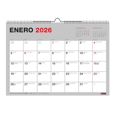 2026 WALL CALENDAR 12 MONTH (January-December) with metal double spiral and hanging piece. Compact and functional, ideal for tight spaces without losing visibility. 2026 PLANNER with spacious daily boxes to write tasks, appointments and reminders clearly and organized. INCLUDES annual calendar on the back of each month with national, regional and provincial capital holidays, information cover, moon phases, onomastic and planning 2027. Format 210 x 150 mm made with high quality paper of 120 g/m² with FSC Mix Credit certification, ensuring sustainability and resistance. DISCOVER THE Miquelrius Hanging Calendar that combines utility and design. Ideal for homes, offices or study spaces where jotting down everything is essential.