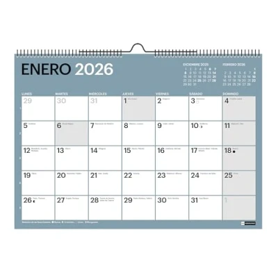 2026 WALL CALENDAR 12 MONTH (January - December) with double spiral and hanging piece. A practical and compact format for planning the year at home, office or tight spaces. ANNOTATING SPACE with ample boxes to record appointments, reminders or important events. Full monthly view with previous and post-month references. INCLUDES 2026 annual calendar on the back of each month, national and regional holidays, onomastics, moon phases, planning 2027 and explanatory cover. A4 hanging format (296 x 210 mm), made with FSC Mix Credit certified 120 g/m² paper. Durable and environmentally friendly design. EXCLUSIVE CHROME DESIGN where each month is presented in a color different from a palette of 9 shades. A colorful and organized way to plan your year.
