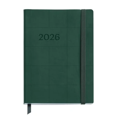 PRACTICAL, FLEXIBLE & COMPACT: 122 x 168 mm Journal Yearly Planner: Practical, lightweight and easy to carry, perfect for planning your 2026 anywhere comfortably. DAY-BY PAGE PLANNING-CLEAR DAILY ORGANIZATION - Monday to Friday on own page and end together, helps keep everything under control with a single glance. FSC ECO-FRIENDLY PAPER 80gsm FSC Certified Ivory Paper Mix, ideal for writing with pen or pencil and environmentally friendly. 2026 COMPLETE AGENDA: Languages: Spanish, English and Portuguese; includes national holidays of Spain and Portugal and useful icons for important events. BASIC GREEN TABLES Flexible cover in green imitation leather with stitched binding, elastic band, marker ribbon and details engraved in dry blow with fresh and natural air.