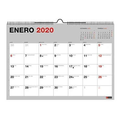 Miquelrius 28033 Wall Calendar A3 for Writing Grey 2020 Basic Spanish