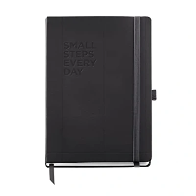 AGENDA 18 MONTHS, from September 2022 to June 2023. Annuity WEEK VIEW. Fully bilingual agenda language (Spanish-English). Black cover with text: Small steps every day. CONTAINS: Personal Data, Calendar 2 Years, Monthly Planning, Monthly Double Page Calendar, Addresses, Notes. SHEET SIZE: 155x213mm, approx A5. PAPER: 70 g Extra Opaque. It prevents ink from passing through thanks to its quick drying and also slows its irradiation. Micro-perforated corners for easy access to the ongoing week Flexible imitation leather (PU) covers with engraved details. COSIDA binding with marker tape. Includes inner pocket, rubber pen holder and elastic closure. MADE WITH SUSTAINABLE PAPER. FSC MIX CREDIT certification ensuring that the paper comes from environmentally sustainable forests. Made in Spain.