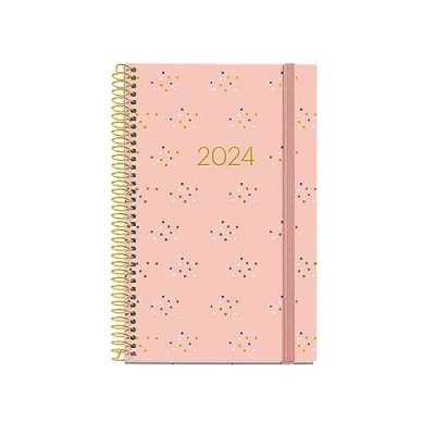 Miquelrius Annual Diary 2024, Week to View, Active Size 117 x 182 mm, Hard Cover, Spiral Binding, Elastic Closure, Catalan, English and Portuguese, Minidots with Gold Stamping