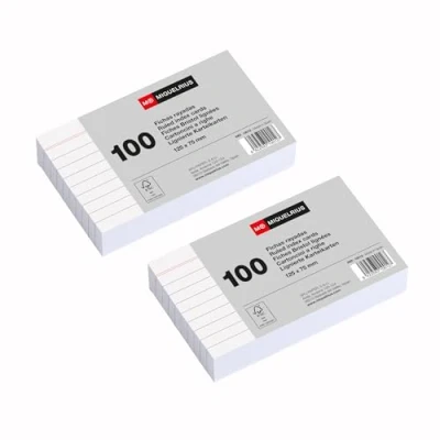 Ideal sheets for organizing ideas: Pack of 200 cards designed for notes, summaries, study and brainstorming. Perfect for students, opponents and professionals. LINED SHEET FOR ORDERATE WRITING: Perfect for notes and structured summaries. Its lines keep writing aligned and facilitate a clear, readable presentation. PREMIUM QUALITY, MADE IN SPAIN: Durable materials withstand daily use without bending. Guarantee of reliability and local production. 125 x 75 mm MEDIUM SHEET - The ideal balance of portability and writing space. Ideal for summaries, schemes and organization of ideas without taking up too much space. High quality cardstock, no ink transfer: sturdy and well-finished paper prevents smudges and transparencies. Suitable for pens, markers and pencils.