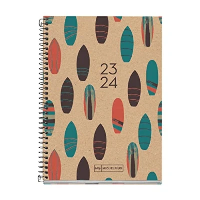 Miquelrius Diary Year 23 24, from September 2023 to June 2024, Size 11.8 x 17.5 cm, Day Page, Recycled Diary, Surf, Spanish English