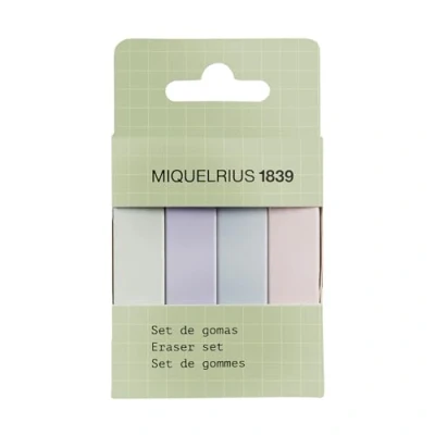 Miquelrius Eraser Set, Pack of 4 Pastel Colours, Size 74 x 15 10 mm, Back2Basics Collection