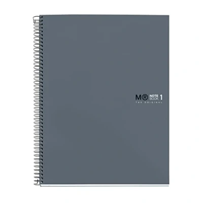 Small A5 notebook (148 x 210 mm) with hardcover and 5 x 5 mm grid interior. White leaves with side and interior in 1 color. 80 sheets of high-quality extra-opaque paper. High grammage 90 g/m² that allows the ink not to pass through and be able to use the sheets on both sides. Micro-perforated sheets for easy separation and 2 holes for file in folder. Leaves with side strip, header for titles and grid, all in graphite gray. High quality color printing makes writing and reading easy. Covers made of extra rigid plasticized matte board, which serves as a writing support. Coilock spiral prevents snagging and allows flat opening. Graphite grey colour. Notebook made with sustainable paper and FSC MIX CREDIT certification that ensures that the paper comes from environmentally sustainable forests. Made in Spain.