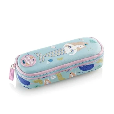 Miquelrius pencil case with a compartment, OVAL school case, durable plastic zip, metal handle, 205 x 45 60 mm, Little Mermaid, sky blue, MERMAID RECYCLED