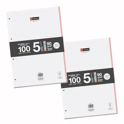 A4 refill with coloured stripes: 5 pastel stripes for organising notes by subjects or subjects. 5 x 5 mm squared sheets: Precise grid with offset printing for clear and tidy writing. 90gsm Opaque Paper: 300 A4 sheets prevent ink bleed through and offer comfortable writing. Loose Leaf with 4 Holes - Make filing easy in folders without burdening the entire pad. SUSTAINABLE FSC PAPER: Made in Spain with FSC Mix Credit certification and responsible quality.