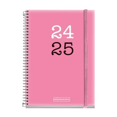 Miquelrius School Diary 2024 2025, September to August Size 117 x 174 mm, Week View, Opaque Polypropylene Cover, Rubber Closure, Catalan and English, College Pink