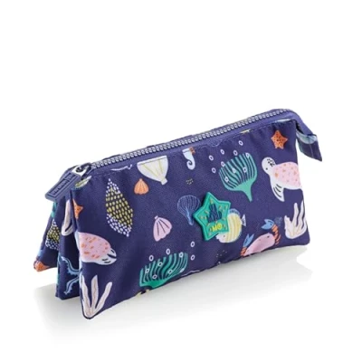 Triple pencil case with three independent compartments, optimally for keeping all your materials optimally organized, making sure they are always within reach when you need them Lightweight and easy to carry in backpacks, purses or handbags and is ideal for going to school or taking with you while traveling; it is created so you can carry all the school supplies you need School pencil case with zip closure made of quality plastic, durable and with metal pull for durability and ease of use Recycled pencil case made from sustainable material made with recycled plastic bottles; outer composition of rpet (recycled polyester); polyester inner lining Sea world discovers the children's collection in blue tones optimal for little ocean lovers; with designs inspired by marine life it is optimal for bringing the magic of the sea back to school, adding freshness and adventure to every day