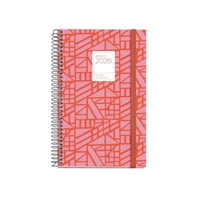 COOL STYLE Cover with abstract lines in coral tones and copper details, perfect for giving a touch of modern color. Weekly Organization from January to December 2026, Catalan language, with holidays in Catalonia and capitals each week. Practical format: 117 x 182 mm, compact and lightweight, ideal for use on a desk or always carry in a bag or backpack. High-quality materials – Sturdy cover made of lined cardboard and FSC ivory paper 80 g/m², spiral binding designed for comfortable daily use. FUNCTIONAL EXTRAS Elastic band, micro-perforated sheets, calendars, space for notes and addresses and icons to highlight important moments.