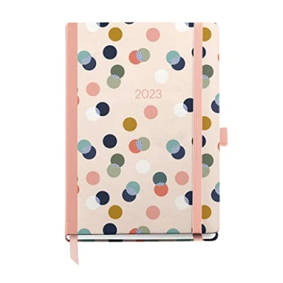 Miquelrius Year Planner 2023 Day Page Journal Size 122 x 168 mm Hard Cover Stitched Binding Catalan, English and Portuguese Confetti