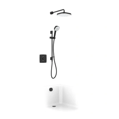 Mira Evoco Triple Outlet Thermostatic Mixer Shower (With HydroGlo) - Matt Black (1.1967.010). Mira Evoco Bath fill and Dual Outlet Shower with HydroGlo™ Technology - Enjoy style as clean and luxurious as your experience - featuring a fully-concealed shower mixer, indulgent double showerheads and a bath filler. With innovative Mira HydroGlo™ technology, illuminating at the perfect temperature. Ultra-sleek, fully-concealed - Create a refined, sophisticated look and feel. With minimalist controls and a choice of three premium finishes: Chrome, Matt Black and Brushed Nickel. Glo with the flow - Innovative Mira HydroGlo™ technology illuminates the controls when your perfect temperature is reached. Switched-on design, no electricity or batteries needed. Precise, push-button controls - The perfect shower, at your fingertips. Thanks to push-button activation and our super simple temperature dial. Powerful performance - Mira MagniFlo™ technology provides consistent power to both shower outlets at the same time. For invigorating performance, even at low pressures. Be spoilt for choice - Choose overhead for drenching refreshment. Handset for precision control. Both for spectacular indulgence. Or a luxurious bath for the ultimate relaxation. Two heads are better than one - Enhance your coverage and pleasure with the 110mm multi-mode handset. With rub-clean nozzles to make maintenance a breeze. Full coverage for total opulence - Mira Evoco’s 250mm deluge showerhead is carefully engineered to maximise flow and coverage. For a more luxurious showering experience. One box. Many options. - Everything you need for the perfect shower or bath-fill installation, all in one box. No need for separate purchases. Works on all systems, even at low pressure Choose your outlet - intuitive push button technology allows you to select the handset, overhead, bath filler or all three Mira Cool Shield™ to ensure valve doesn’t get hot during showering Mira Magni-flo™ technology delivers up to 3x more flow, even at low pressure Water entry points: Bottom only Hot left, cold right only Flow rate at 0.5 bar: 8.2 l/min (at Handset), 10.51 l/min (at Deluge), 8.98 l/min (at Bath filler) Automatic shutdown: Shutdown within 2 seconds Factory set to safe maximum temperature Adjustable maximum temperature for on-site conditions WRAS approved (Water Regulations Advisory Scheme) TMV2 approved product @ed9iicszg8s@ Genuine brand new Mira product, covered by a Mira manufacturer's guara...
