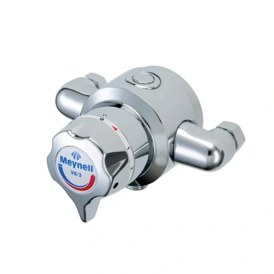 Meynell Safemix V8 mixer shower. 1/2" exposed single sequential thermostatic mixing valve. Supplied complete with integral strainers. Features: Buildcert TMV3 Scheme Approved Buildcert TMV2 Scheme Approved High flow rates at low pressures Reliable thermostatic performance Safe thermostatic shutdown in less than 2 seconds Suitable for use on all plumbing systems All available spare parts to fit the Meynell V8 thermostatic mixer shower valve. Genuine brand new Meynell product, covered by a Meynell manufacturer's guarantee.