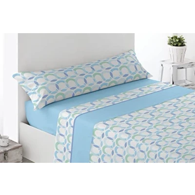 Miracle Home. Acari 4 Piece Duvet Cover Set, Fitted Sheet, Flat Sheet and Two Pillowcases, 50% Cotton, Polyester, 180 x 200 cm, Blue