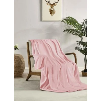 Miracle Home. Fleece Blanket Reversible Microfiber Glass Flannel Velour 260GSM, Soft, Warm and Lightweight, Machine Washable, 130 X 160, Pink