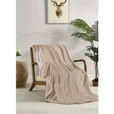 Miracle Home. Fleece Blanket Reversible Microfiber Glass Flannel Velour 260GSM, Soft, Warm and Lightweight, Machine Washable, 160 X 220 cm, Beige
