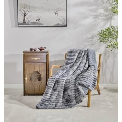 2 in 1 Design - Reversible throw blanket with an embossed velvety flannel side and fuzzy sherpa reverse, combining softness, warmth and decorative style. VERSATILE AND FUNCTIONAL - Available in multiple sizes (130x160cm, 160x220cm and 220x240cm), perfect as a sofa, armchair or bed blanket. Soft and cozy: light but warm, ideal for winter and cool evenings in between seasons. Provides comfort without feeling of excess heat. Modern colours: blue, grey and dusty pink, neutral tones easily match any decor. Durable and easy to care: machine washable, retains its softness and vivid colors even after many washes.
