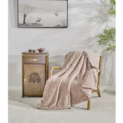 2 in 1 Design - Reversible throw blanket with an embossed velvety flannel side and fuzzy sherpa reverse, combining softness, warmth and decorative style. VERSATILE AND FUNCTIONAL - Available in multiple sizes (130x160cm, 160x220cm and 220x240cm), perfect as a sofa, armchair or bed blanket. Soft and cozy: light but warm, ideal for winter and cool evenings in between seasons. Provides comfort without feeling of excess heat. Modern colours: blue, grey and dusty pink, neutral tones easily match any decor. Durable and easy to care: machine washable, retains its softness and vivid colors even after many washes.