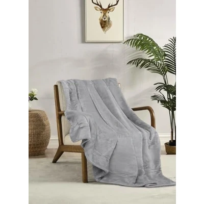 Miracle Home. Fleece Blanket Reversible Microfiber Pyrite Flannel Velour and Sherpa 260GSM 180GSM, Soft, Warm Lightweight, Machine Washable, 130 X 160, Grey