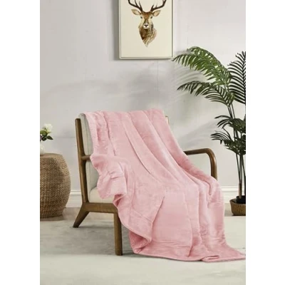 Miracle Home. Fleece Blanket Reversible Microfiber Pyrite Flannel Velvet Sherpa 260GSM 180GSM, Soft, Warm and Lightweight, Machine Washable, 130 X 160 Pink