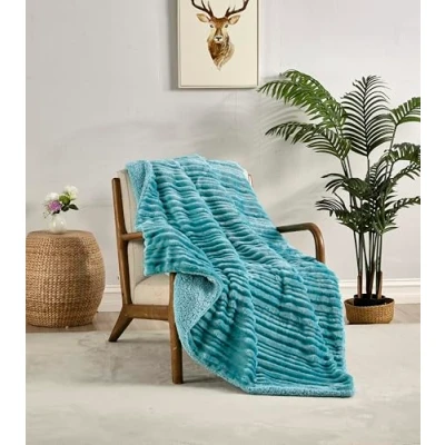 2 in 1 Design - Reversible throw blanket with an embossed velvety flannel side and fuzzy sherpa reverse, combining softness, warmth and decorative style. VERSATILE AND FUNCTIONAL - Available in multiple sizes (130x160cm, 160x220cm and 220x240cm), perfect as a sofa, armchair or bed blanket. Soft and cozy: light but warm, ideal for winter and cool evenings in between seasons. Provides comfort without feeling of excess heat. Modern colours: blue, grey and dusty pink, neutral tones easily match any decor. Durable and easy to care: machine washable, retains its softness and vivid colors even after many washes.