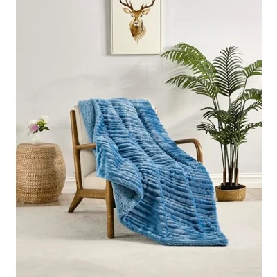2 in 1 Design - Reversible throw blanket with an embossed velvety flannel side and fuzzy sherpa reverse, combining softness, warmth and decorative style. VERSATILE AND FUNCTIONAL - Available in multiple sizes (130x160cm, 160x220cm and 220x240cm), perfect as a sofa, armchair or bed blanket. Soft and cozy: light but warm, ideal for winter and cool evenings in between seasons. Provides comfort without feeling of excess heat. Modern colours: blue, grey and dusty pink, neutral tones easily match any decor. Durable and easy to care: machine washable, retains its softness and vivid colors even after many washes.