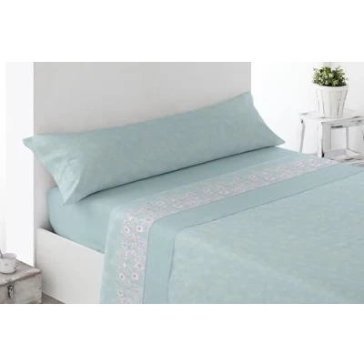 Miracle Home. Roda Bed Sheet Set of 4 Pieces, Fitted Sheet, Top and 2 Pillowcases, Anti Peeling, Blue, 150 x 200 cm, cm Bed, Pillowcases 70 45