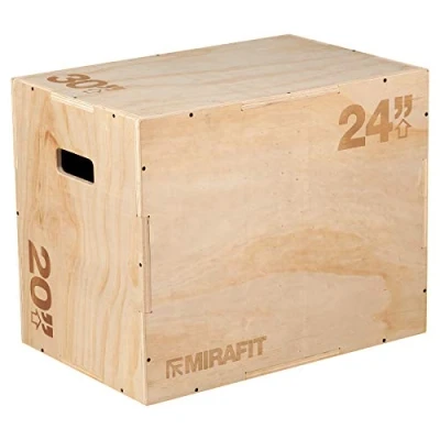 Mirafit 3In1 Wooden Plyo Jump Box - 3 Jump heights: 30" - 24" - 20" Strong 18mm plywood construction with internal reinforcement structure - Maximum user weight 150kg - Handle cut outs allow for easy movement Develop speed, strength and explosive power - Box jumps improve the reaction of fast-twitch muscle fibres throughout the body - Great to incorporate into weight loss training Arrives flat packed - Easy to assemble - Please note: tools required for assembly are not included - We strongly recommend the addition of wood glue (not included) along all joins before screwing the box together, this will provide additional strength. This is essential for use in commercial settings or for users over 113kg/250lbs - Important: plyo boxes should not be used on smooth surfaces unless they are positioned against a wall where they cannot slip Measurements: 30" / 76cm - 24" / 61cm - 20" / 51Cm