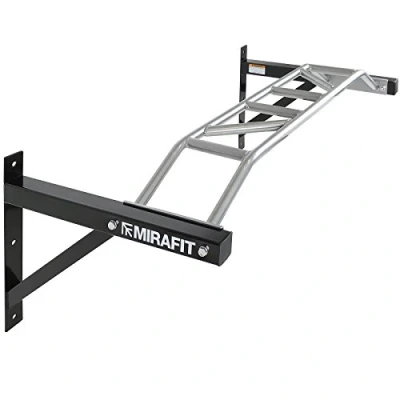 Mirafit Heavy Duty Black and Silver Multi Grip Wall Mounted Pull Up Bar 1.2m Wide