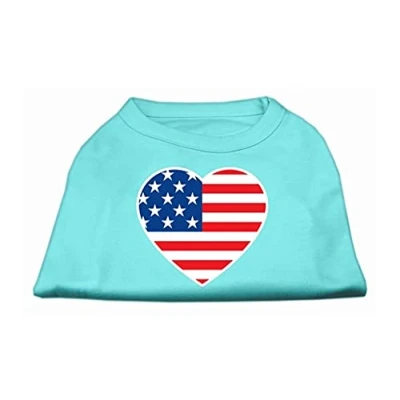 Mirage American Flag Heart Screen Print Shirt, XX Large, Aqua