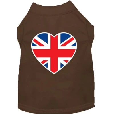 Mirage British Flag Heart Screen Print Dog Shirt, Small, Brown