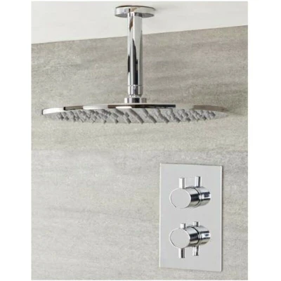 Mirage Modern 1 Outlet Twin Thermostatic Mixer Shower Valve with Ceiling Mounted 300mm Round Rainfall Head Chrome Milano