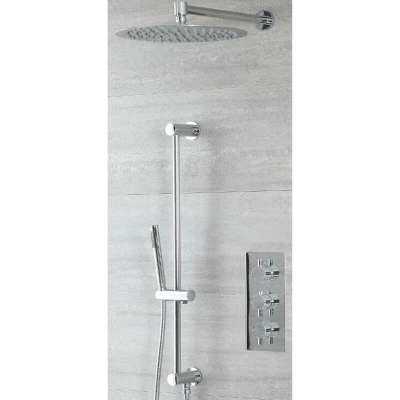 Mirage Modern 2 Outlet Triple Thermostatic Mixer Shower Valve with 300mm Wall Mounted Round Rainfall Head and Hand Handset Slide Rail