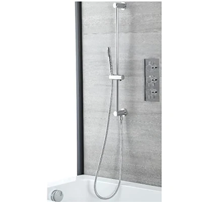 General description Ensure that your bathing and showering experience will leave you feeling refreshed with the Milano Mirage two outlet bath and shower system, which includes a triple thermostatic shower valve, slide rail kit, and overflow bath filler. The sleek look is completed by the chrome finish throughout, giving a contemporary feel that will elevate the look of your bathroom. Technical specifications Type: Two outlet bath and shower system Valve material: Solid brass Shower head material: ABS Hose length: 1.75m Minimum recommended pressure: 1.0 bar Warranty: 10 years Compatibility and accessories Compatible with all types of plumbing systems Includes slide rail kit with ABS hand shower and 1.75m hose Installation Easy installation with standard plumbing fittings Usage Thermostatic control to prevent scalding and freezing Can operate both outlets simultaneously or separately as required Ergonomic round handles for simple and intuitive use Silicone nozzles for easy cleaning and