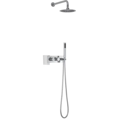 General description Add a touch of sleek and modern style to your bathroom with the chrome finished Milano Mirage two outlet shower system, which includes a twin diverter thermostatic shower valve, a wall-mounted round shower head, and a hand shower kit. The anti-corrosive stainless steel shower head provides rainfall water coverage, leaving you feeling refreshed, while the pencil hand shower offers a soothing spray. Technical specifications Material: Solid brass valve with chrome finish Shower head size: 200mm Minimum recommended pressure: 1.0 bar Hose length: 1.75m Installation Wall-mounted installation Usage Thermostatic control for precise temperature and flow adjustments Ergonomic round handles for simple and intuitive use Diverter to easily switch between outlet functions Silicone nozzles for easy cleaning and removal of limescale Other information Integral anti-scald technology for a safer showering experience Covered for 10 years